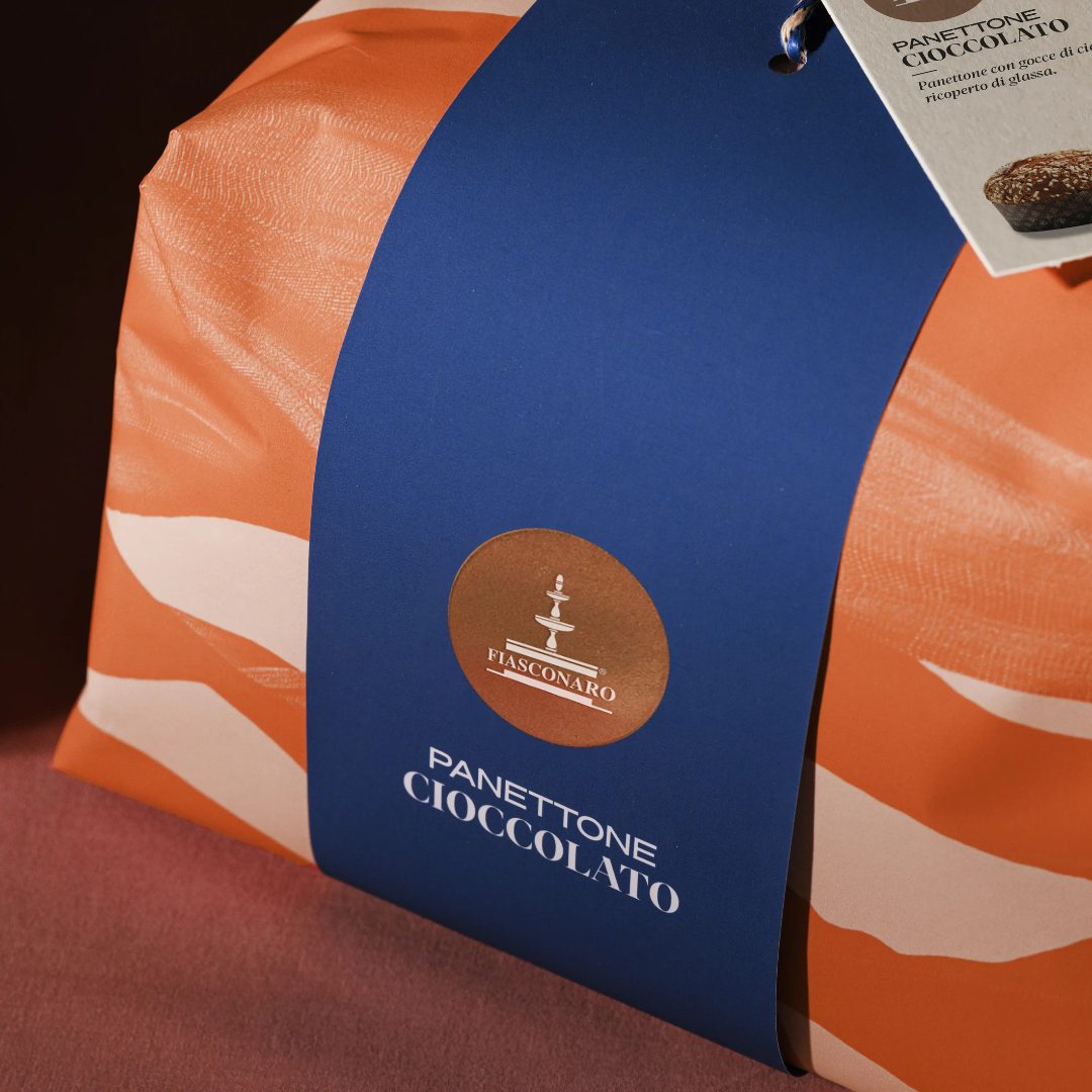 Panettone con gocce di cioccolato ricoperto di glassa. Panettoni della tradizione Italiana preparati con i migliori ingredienti della Sicilia.