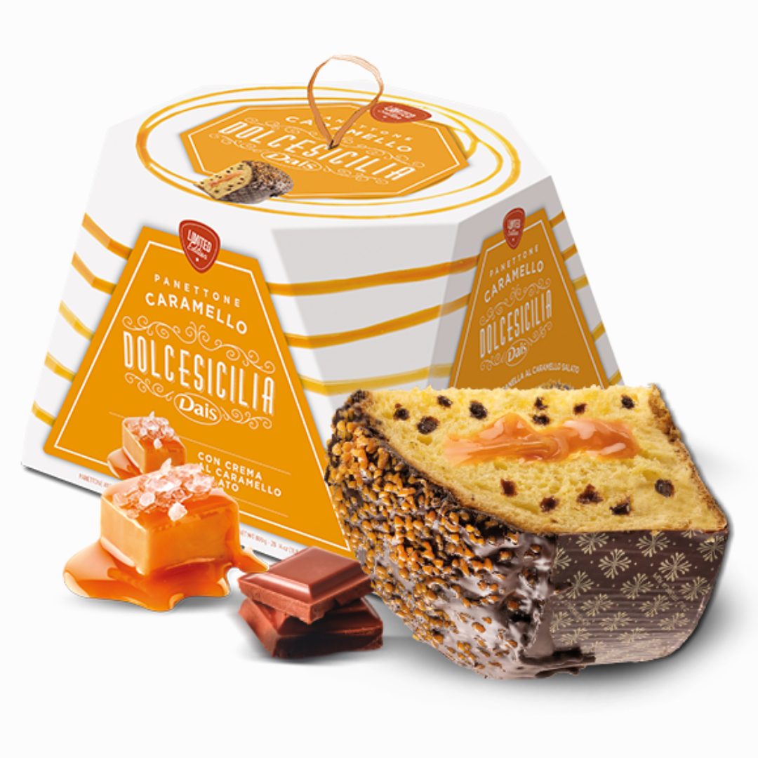 Morbido, avvolgente, goloso: il gusto pieno del caramello salato rende questo panettone una coccola irresistibile