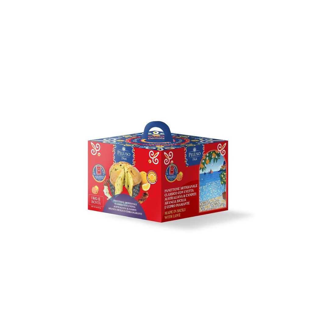 Panettone in scatola arancia, cedro e uvetta 1 kg Peluso