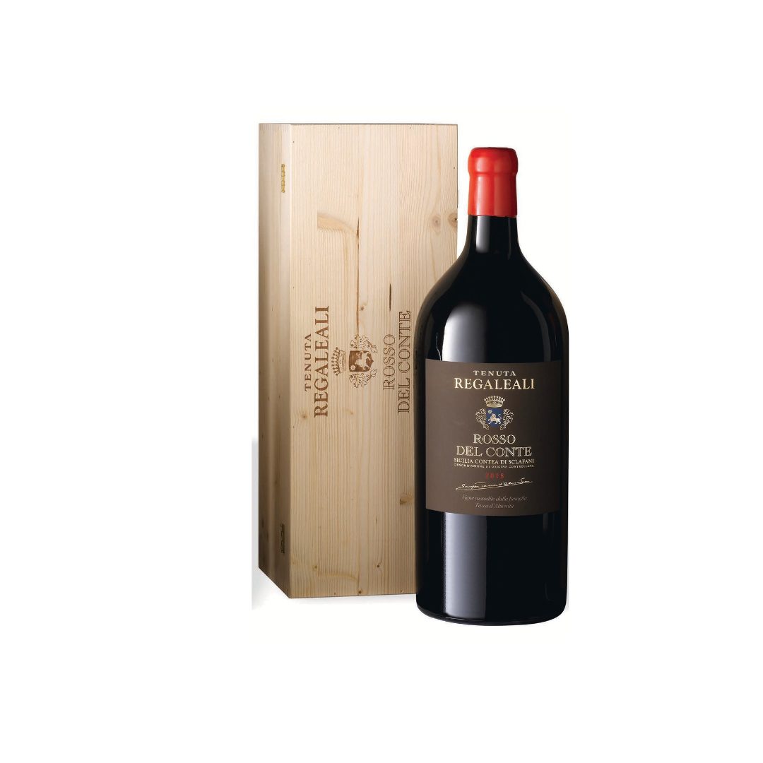 Formato: Cassa in legno contenente una bottiglia da 5 lt Rosso del Conte